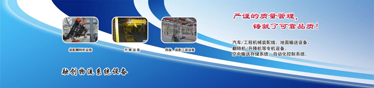 無錫市融創(chuàng)物流系統(tǒng)設備有限公司專業(yè)從事物流輸送設備、各類裝配流水線設備、各類生產(chǎn)非標專機設備和自動化控制系統(tǒng)的專業(yè)生產(chǎn)企業(yè)。廣泛應用于轎車、卡車、客車、各類工程機械、發(fā)動機、車橋、農(nóng)業(yè)機械、郵政、家電等行業(yè) ...... >> more >>